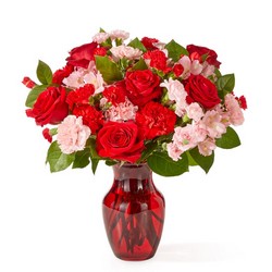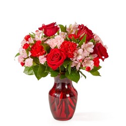 As sweet as candy, this pink and red arrangement is sure to add a sugary rush to their Valentine's Day.